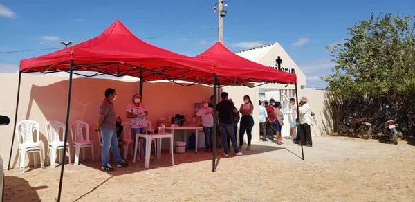 Com o apoio da secretaria de saúde e demais secretarias municipais, que montaram tendas, com cafézinho, água e ofertando também através de uma profissional da saúde aferição da pressão arterial, temperatura e ainda na distribuição de máscara e higienização das mãos com álcool 70%.