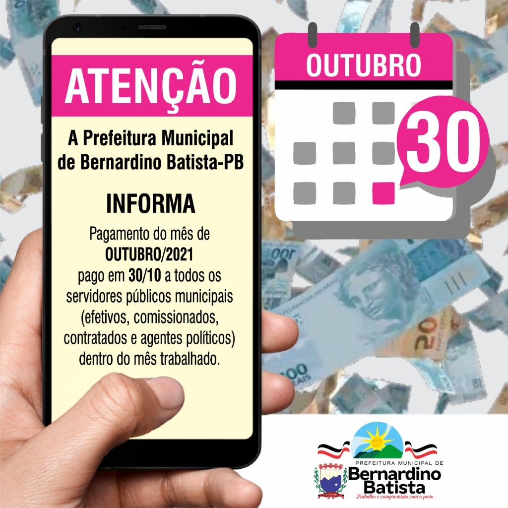 Após a determinação do Prefeito de Bernardino Batista, Aldo Andrade, a secretaria de administração e finanças realizou na sexta feira (29), o pagamento referente ao mês de outubro dos salários dos servidores do município, mantendo a sequência de pagamentos dentro do mês trabalhado.
